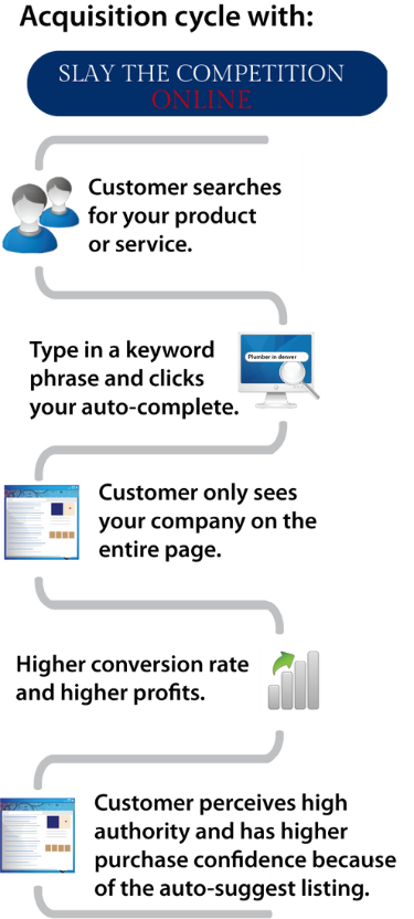 Search Box Optimization leverages proprietary methods of Social SEO, getting your brand and company to trend in the auto-suggestion (aka auto-complete) for Google, Bing and YouTube. Higher visbility can lead to increased visits, leads and sales. Is your company's online presence prepared to effectively eliminate all the competition.
